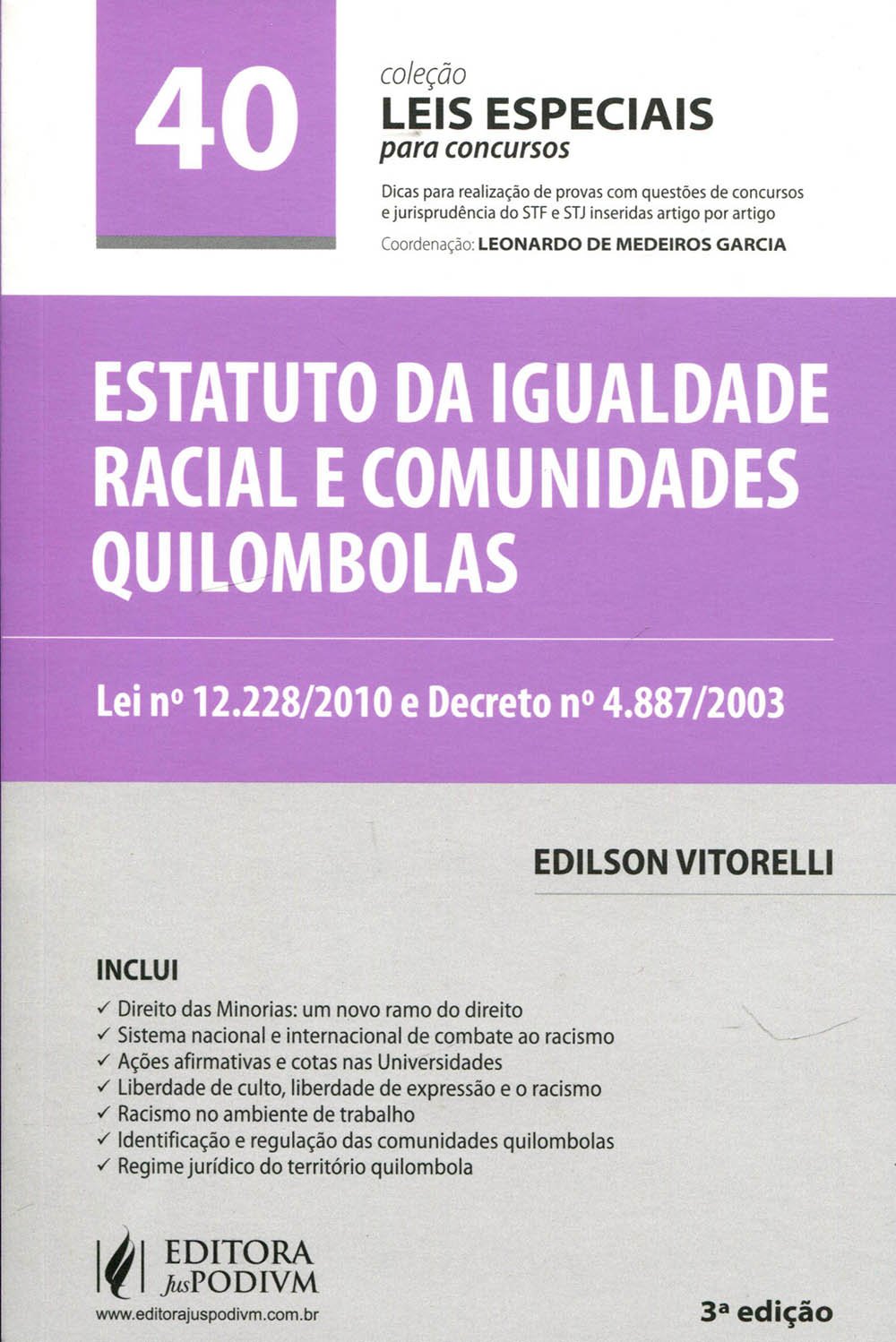 Com o conhecimento obtido a partir da leitura dos volumes que compõem a coleção Leis Especiais Comentadas, o leitor certamente estará mais capacitado e crítico para enfrentar seus desafios profissionais” (Nota do Coordenador).