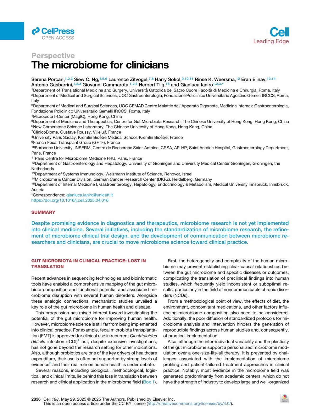 Authors:Sondra Turjeman & Tommaso Rozera & Eran Elinav & Gianluca Ianiro & Omry Koren