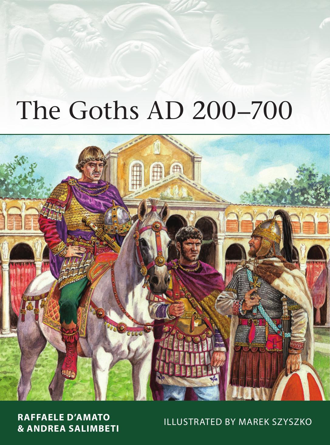 An illustrated study of Rome's key enemies from the Late Principate and Dominate: the western Visigoths and the eastern Ostrogoths. The Goths were a Germanic people who, under pressure from the Huns, migrated during the 2nd century AD to the Balkans, where they split into the Visigoths to the west, and the Ostrogoths to the east. After first raiding and looting Roman territory, some eventually came to serve as allies to the Empire, but this allegiance would collapse following a Hun advancement that saw the Goths forced south against the Danube. Failure to negotiate settlement in this new, Roman-held territory led to wars, during which the Ostrogoths won a decisive victory over a Roman army at Adrianople (AD 378), and the Visigoths finally sacked Rome itself (AD 410). In this fascinating study, Roman military historians Raffaele D'Amato and Andrea Salimbetiand Andrea Salimbeti examine Rome's fierce clashes with the Gothic peoples, exploring their role in the fall of the Western Empire and eventual transition from Roman to early medieval Europe. Newly commissioned artwork, artefact photos and expert research combine to bring to life key events in the Goths' history, including the Ostrogoths' defeat by Emperor Justinian in the 6th century, the establishment of Gothic kingdoms in Italy and the Iberian Peninsula, and their service as subjects and soldiers in Byzantine Crimea.