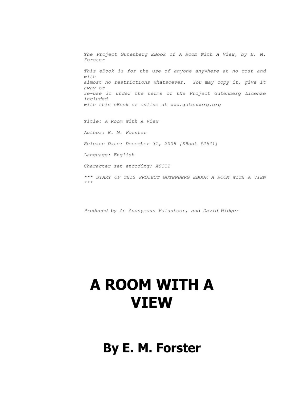 A Room with a View by E. M. Forster instant download